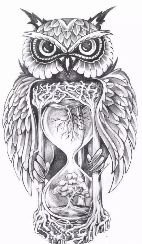 一组漂亮的猫头鹰纹身手稿图案