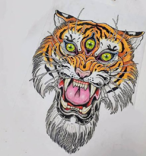 半甲唐狮手稿 传统的9款唐狮主题半甲纹身手稿图片