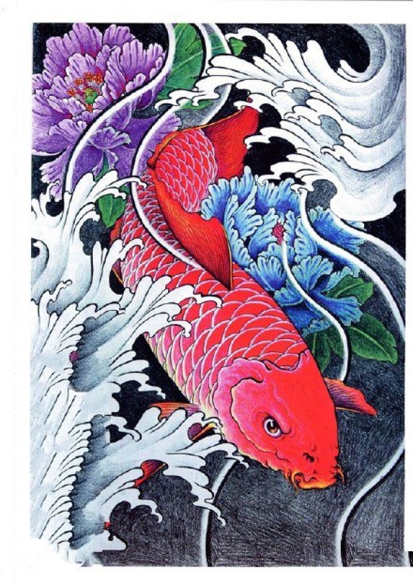 传统的30款鲤鱼纹身手稿图片赏析