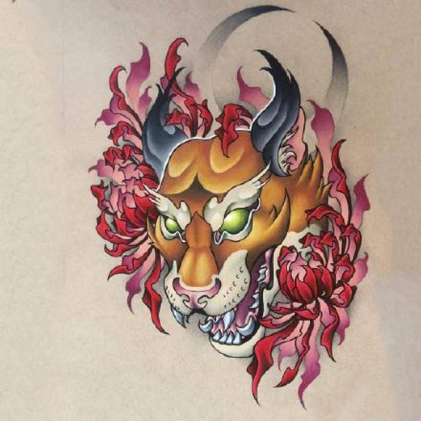 传统艺妓般若纹身图案手稿