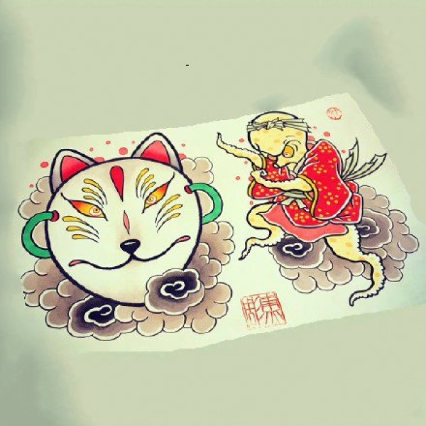 半甲唐狮手稿 传统的9款唐狮主题半甲纹身手稿图片