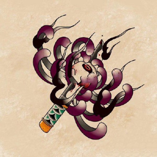 一组满背大气九龙拉棺纹身图案作品和手稿