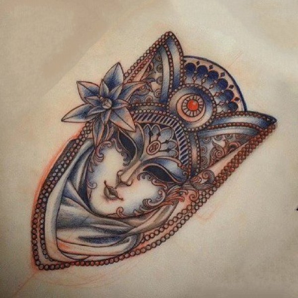 传统艺妓般若纹身图案手稿