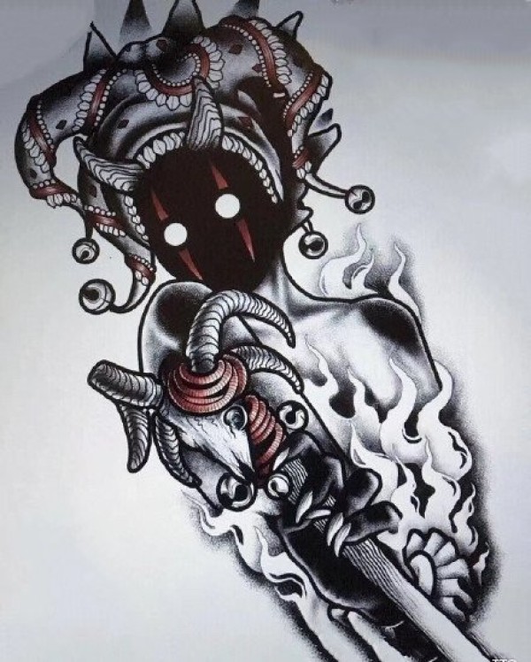 半甲唐狮手稿 传统的9款唐狮主题半甲纹身手稿图片
