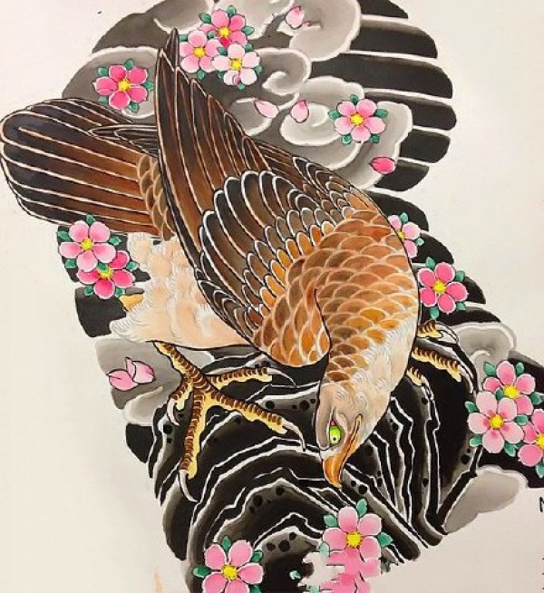 一组满背大气九龙拉棺纹身图案作品和手稿