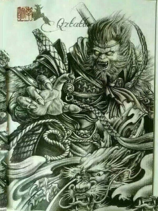 一组黑灰美猴王齐天大圣孙悟空纹身手稿