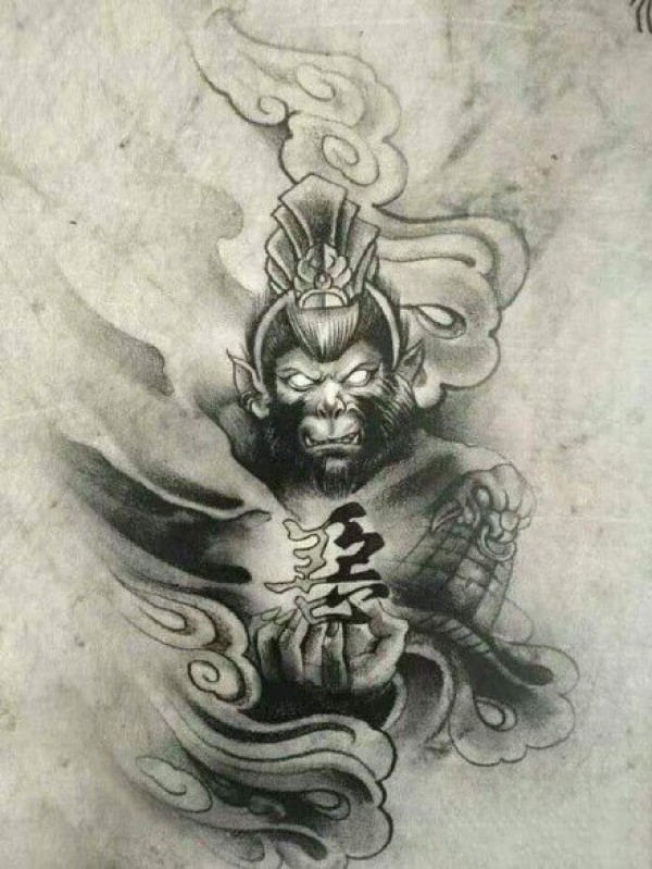 一组黑灰美猴王齐天大圣孙悟空纹身手稿