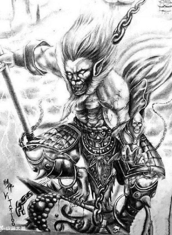 一组黑灰美猴王齐天大圣孙悟空纹身手稿