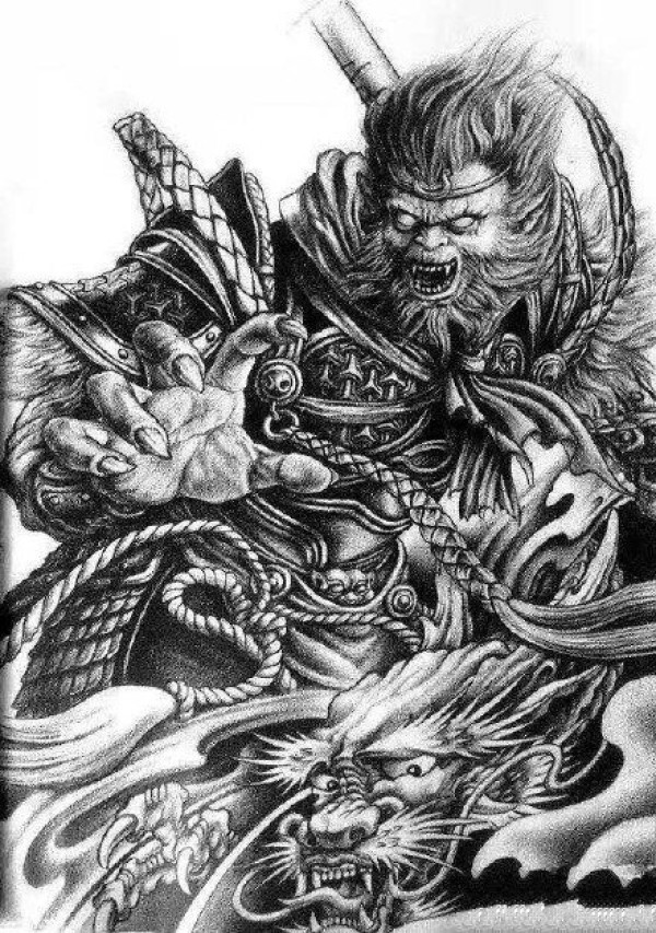 一组黑灰美猴王齐天大圣孙悟空纹身手稿