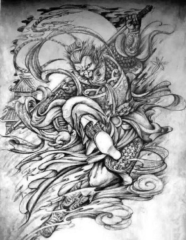 一组黑灰美猴王齐天大圣孙悟空纹身手稿