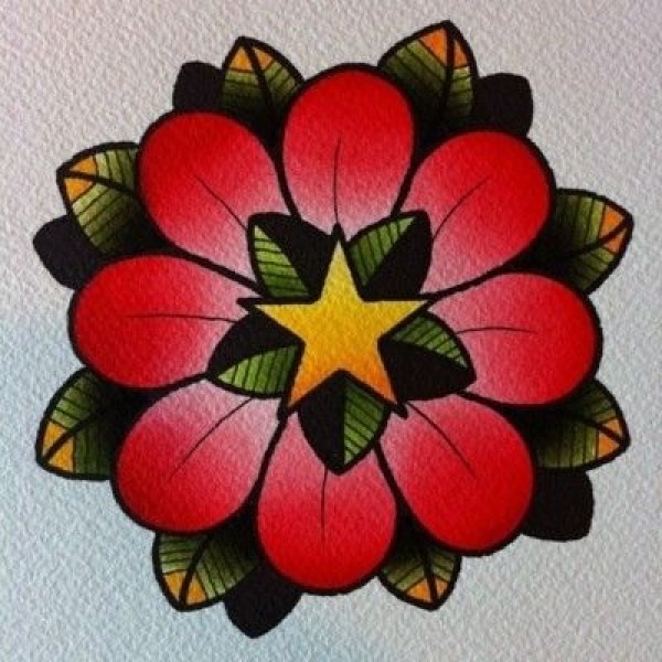 oldschool风格的彩色花卉曼达拉纹身手稿