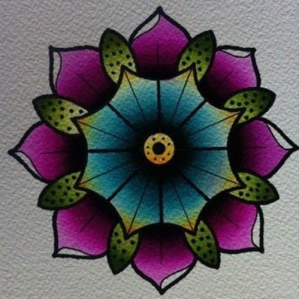 oldschool风格的彩色花卉曼达拉纹身手稿