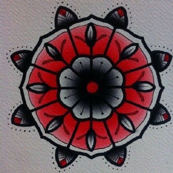 oldschool风格的彩色花卉曼达拉纹身手稿