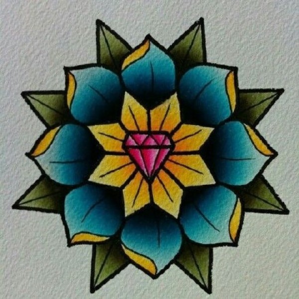 oldschool风格的彩色花卉曼达拉纹身手稿