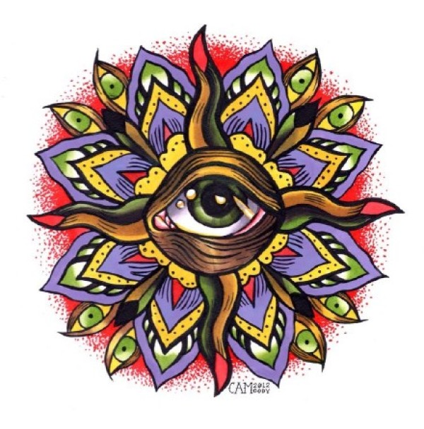 oldschool风格的彩色花卉曼达拉纹身手稿