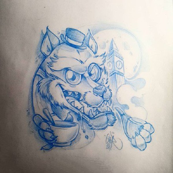半甲唐狮手稿 传统的9款唐狮主题半甲纹身手稿图片