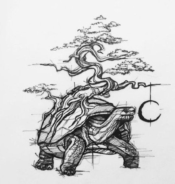半甲唐狮手稿 传统的9款唐狮主题半甲纹身手稿图片