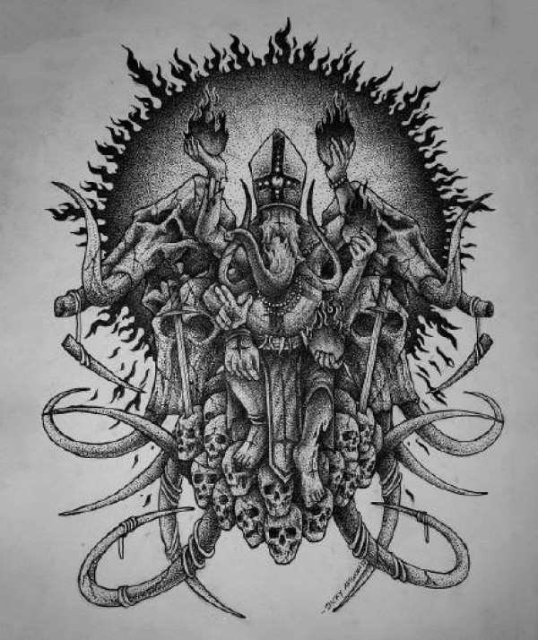 超暗黑点刺风格的一组欧美纹身手稿