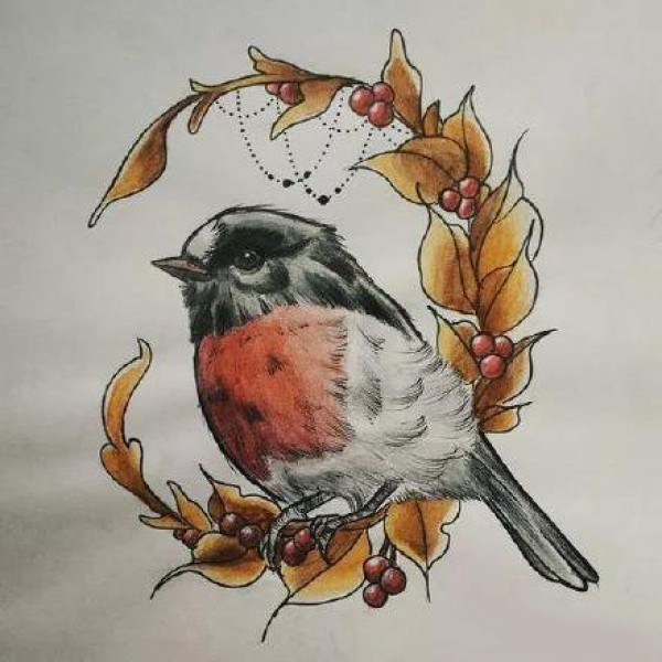 一组Newschool的鸟类纹身手稿图