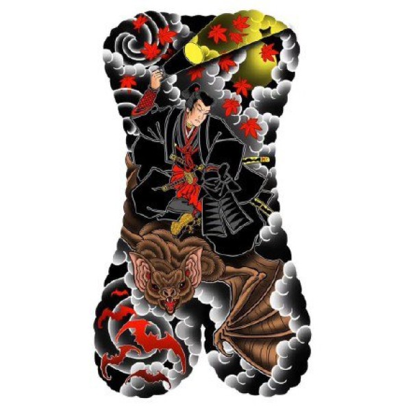 一组满背大气九龙拉棺纹身图案作品和手稿