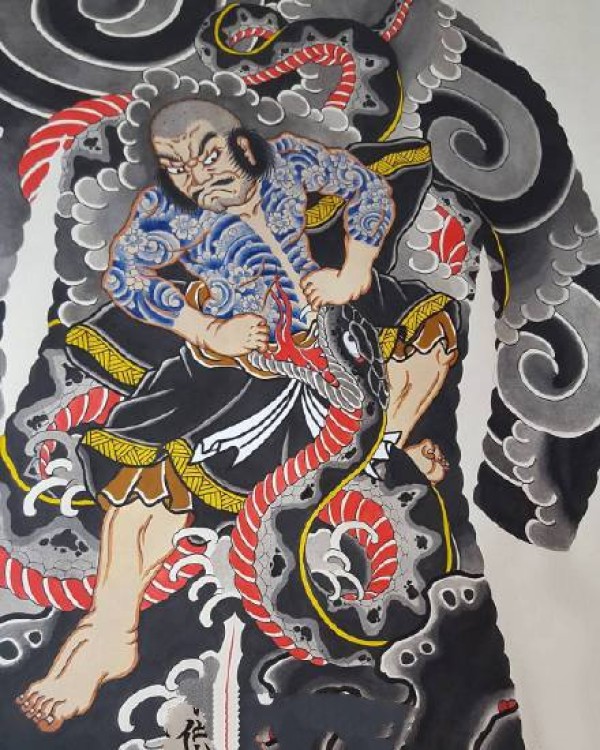 一组满背大气九龙拉棺纹身图案作品和手稿