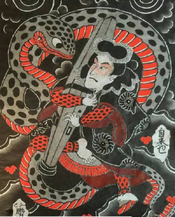 一组满背大气九龙拉棺纹身图案作品和手稿