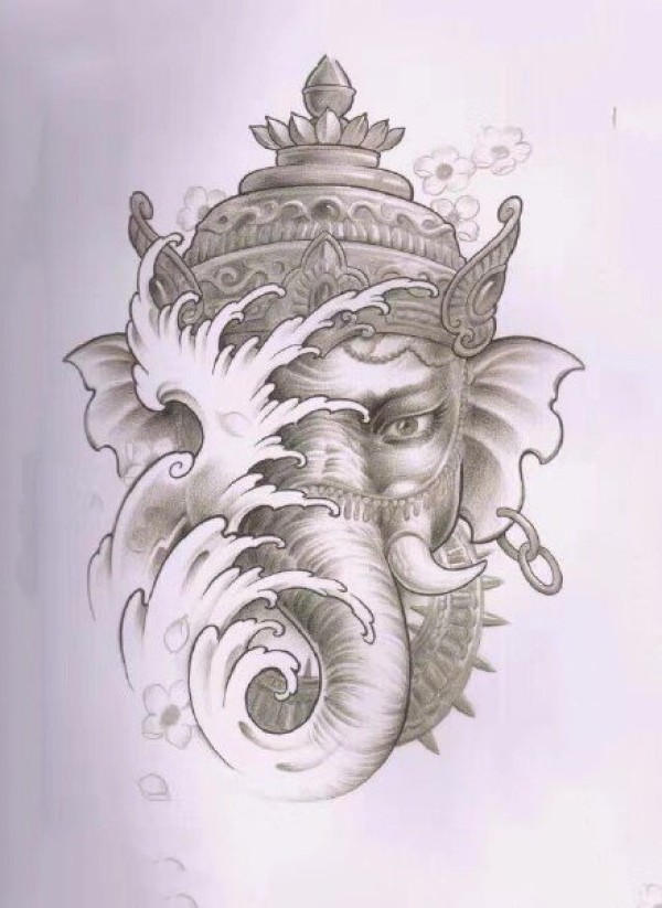 半甲唐狮手稿 传统的9款唐狮主题半甲纹身手稿图片