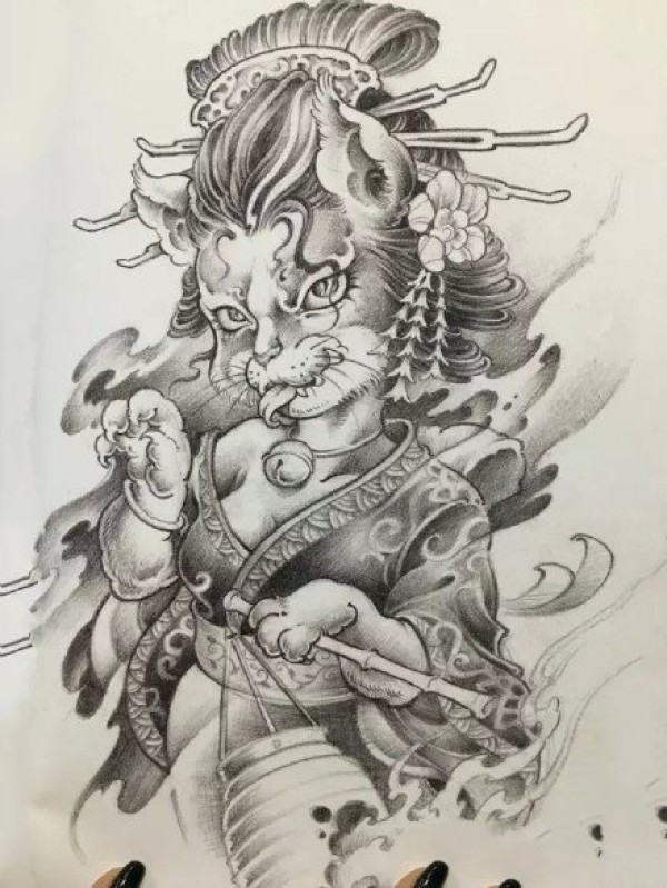半甲唐狮手稿 传统的9款唐狮主题半甲纹身手稿图片