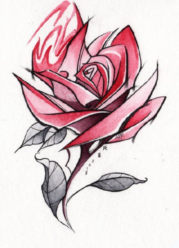 漂亮的一组炫彩玫瑰花纹身手稿图片