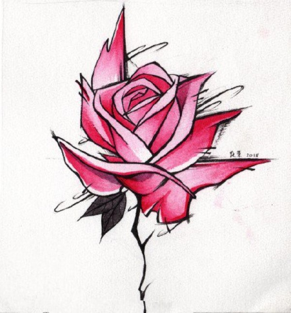 漂亮的一组炫彩玫瑰花纹身手稿图片