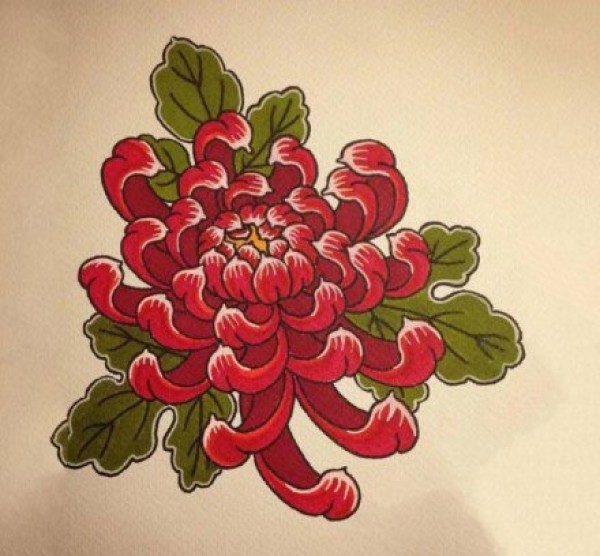 一组彩色的菊花纹身手稿图案