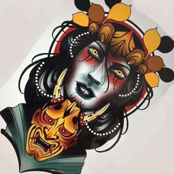 传统艺妓般若纹身图案手稿