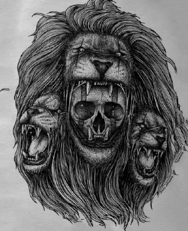 半甲唐狮手稿 传统的9款唐狮主题半甲纹身手稿图片