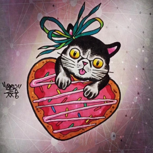 小清新猫头主题的一组猫神纹身素材手稿