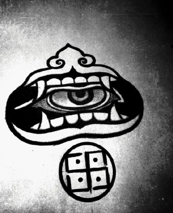 一组藏传佛教的符号纹身手稿图案