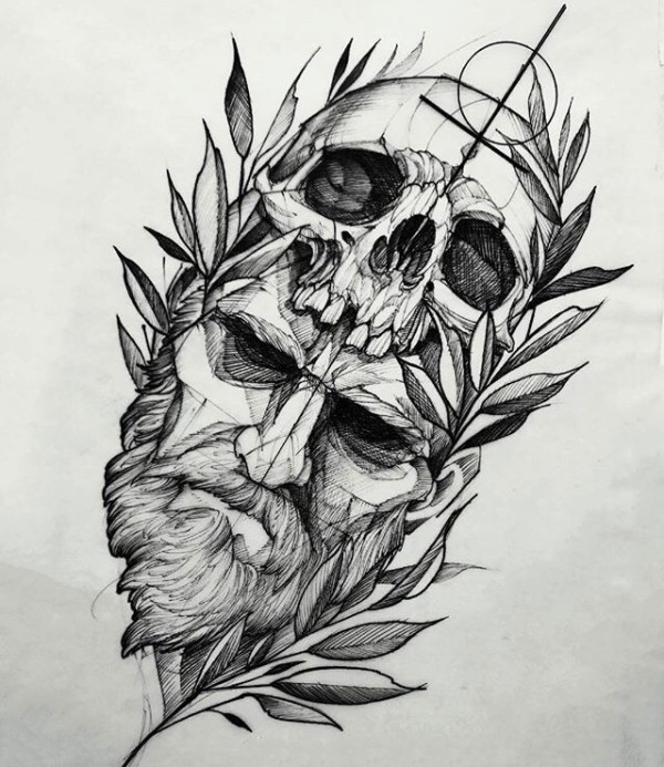 半甲唐狮手稿 传统的9款唐狮主题半甲纹身手稿图片