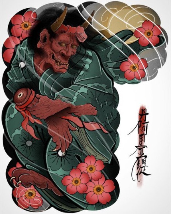 传统艺妓般若纹身图案手稿