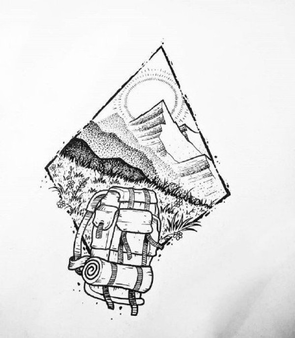 33组创意山水风景黑灰几何手稿图案