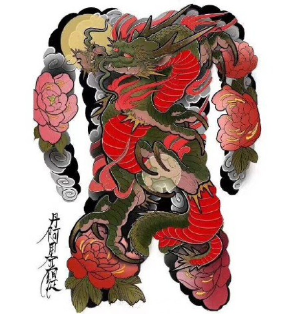 一组满背大气九龙拉棺纹身图案作品和手稿