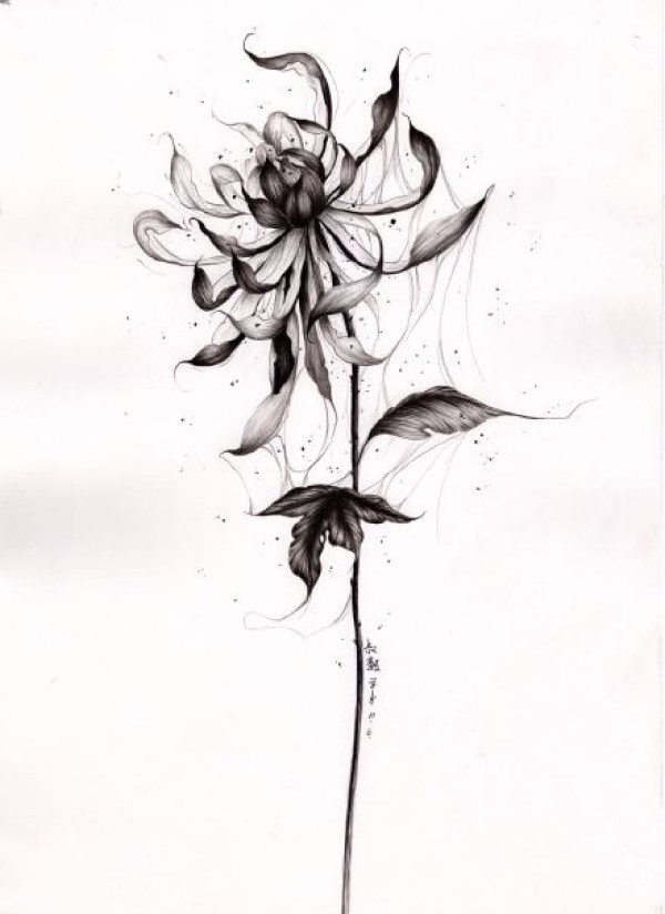 一组漂亮黑白花卉纹身手稿图片