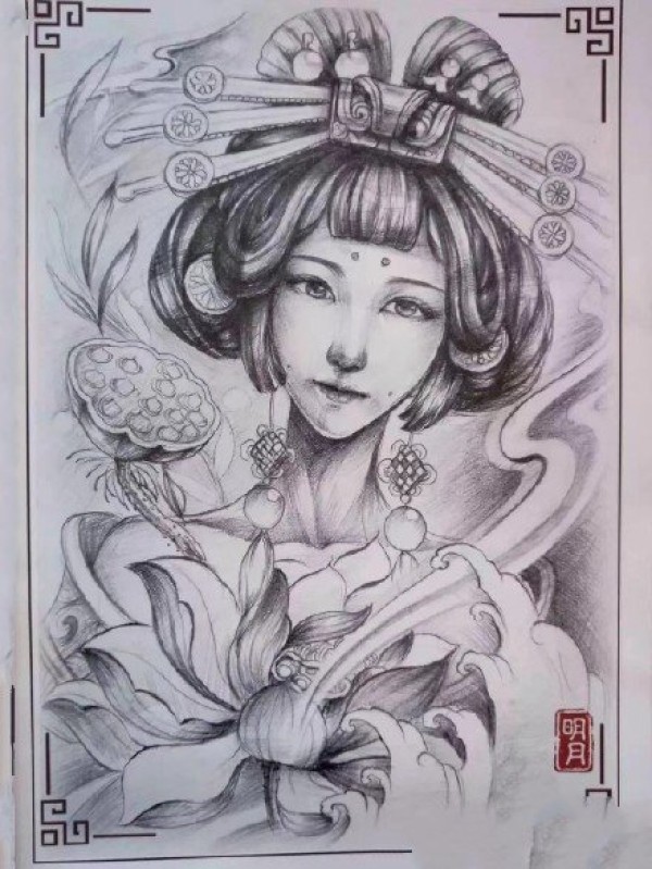 传统艺妓般若纹身图案手稿