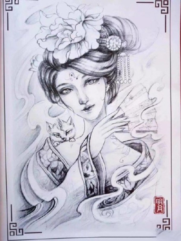 传统艺妓般若纹身图案手稿
