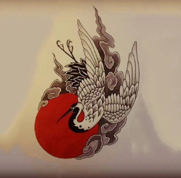 16组传统仙鹤纹身手稿图案