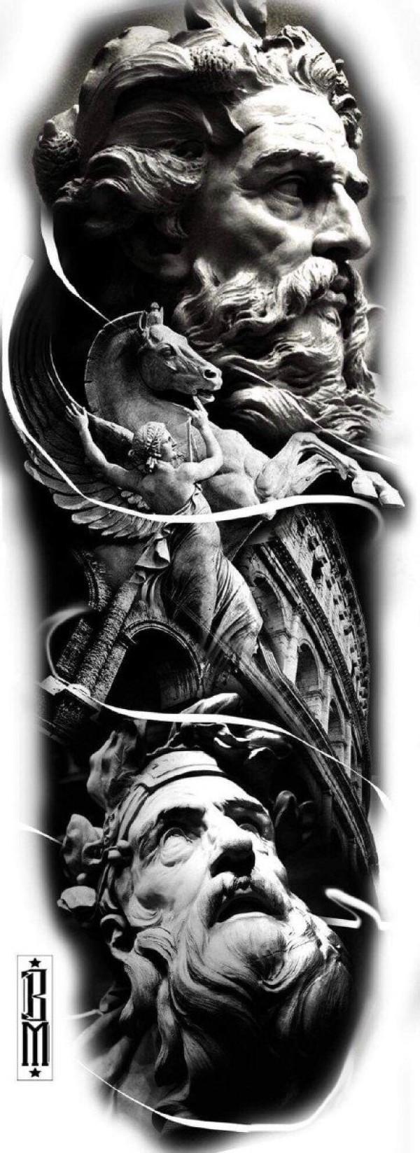 37张包大臂写实风格的纹身手稿图案