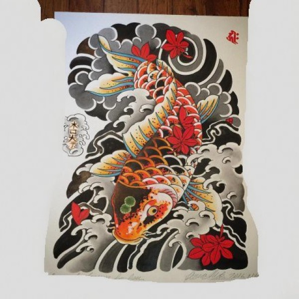 传统的30款鲤鱼纹身手稿图片赏析