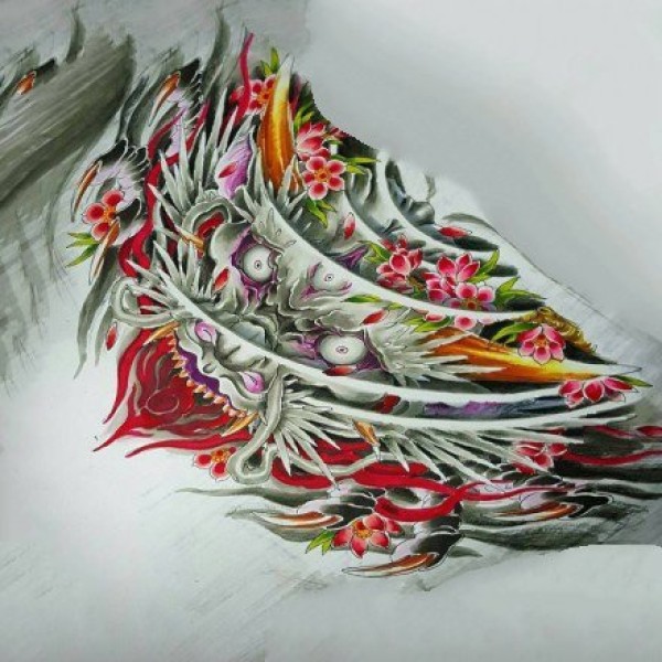 一组满背大气九龙拉棺纹身图案作品和手稿