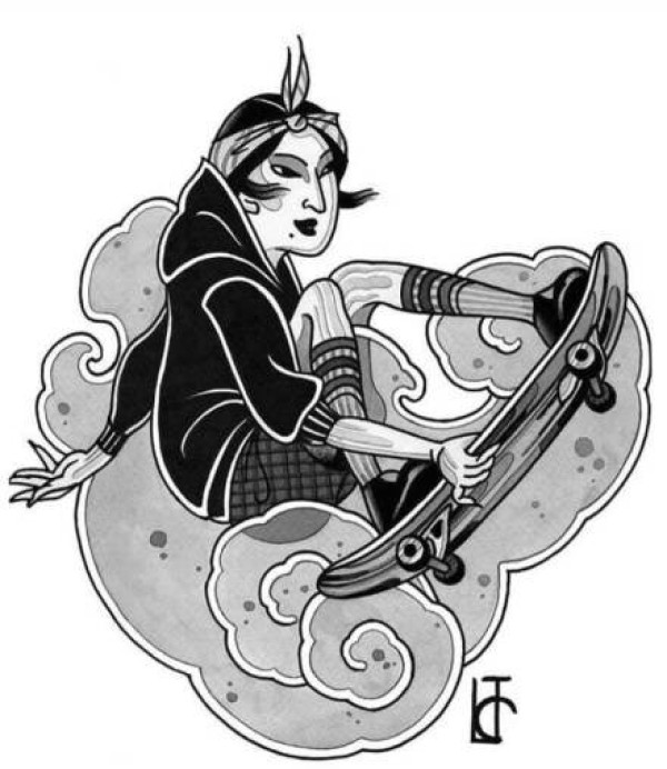 传统艺妓般若纹身图案手稿