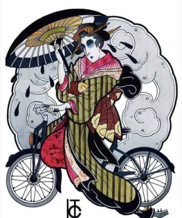 传统艺妓般若纹身图案手稿