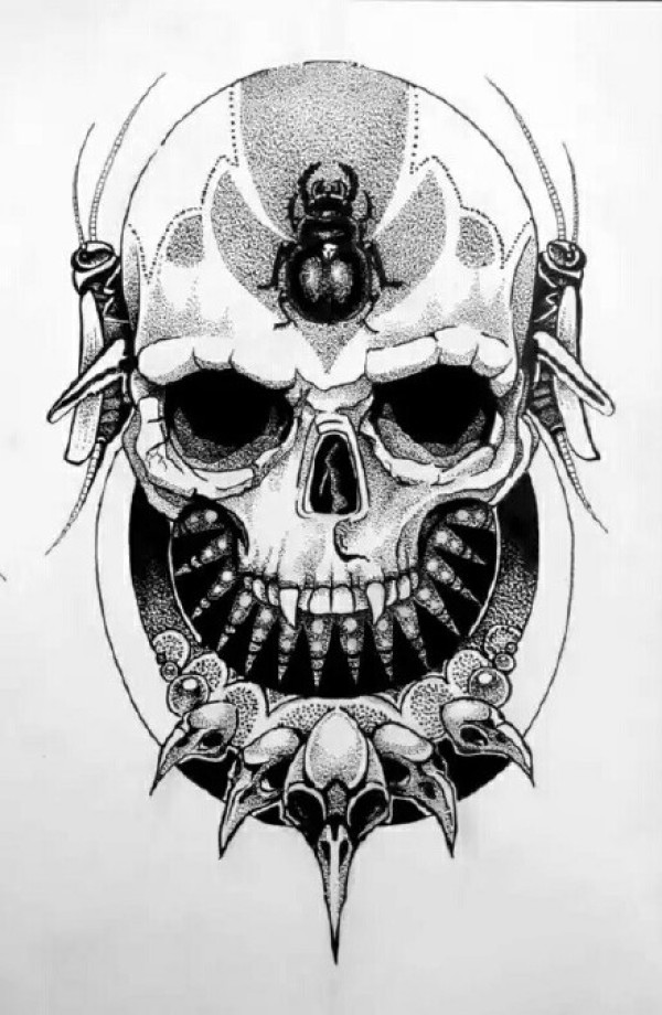 33组个性点刺骷髅头纹身素材手稿