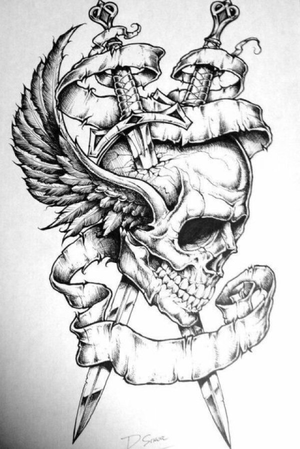 33组个性点刺骷髅头纹身素材手稿